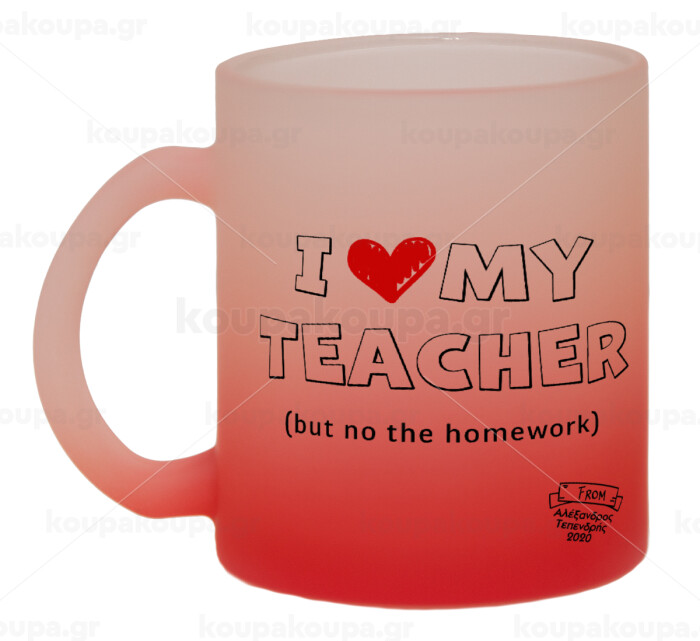 i love my teacher but no the homework outline, Κούπα γυάλινη δίχρωμη με βάση το κόκκινο ματ, 330ml
