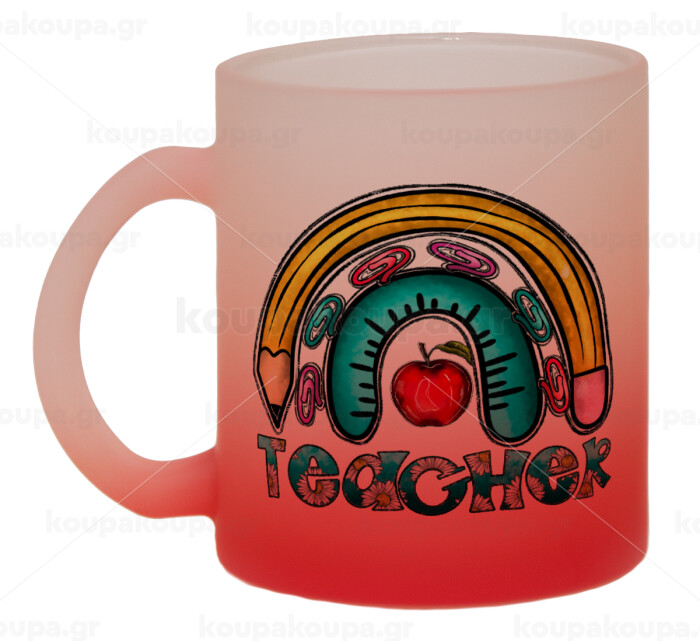 Teacher, Κούπα γυάλινη δίχρωμη με βάση το κόκκινο ματ, 330ml
