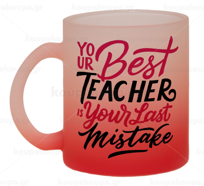 Typography quotes your best teacher is your last mistake, Κούπα γυάλινη δίχρωμη με βάση το κόκκινο ματ, 330ml