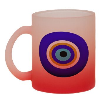 blue evil eye, Κούπα γυάλινη δίχρωμη με βάση το κόκκινο ματ, 330ml