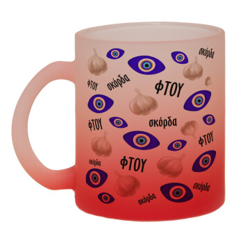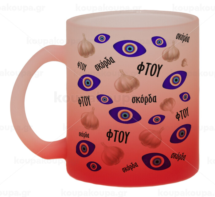 Φτου, φτου, σκόρδα!!!, Κούπα γυάλινη δίχρωμη με βάση το κόκκινο ματ, 330ml