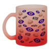 blue evil eye, Κούπα γυάλινη δίχρωμη με βάση το κόκκινο ματ, 330ml