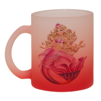 Barbie mermaid , Κούπα γυάλινη δίχρωμη με βάση το κόκκινο ματ, 330ml