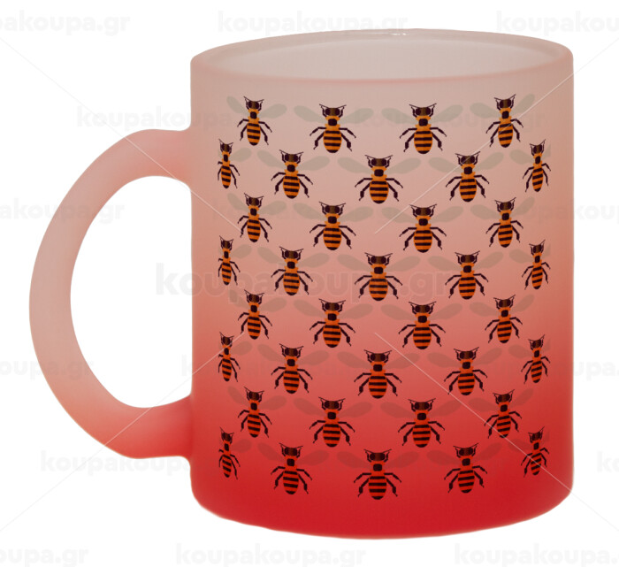 Bee, Κούπα γυάλινη δίχρωμη με βάση το κόκκινο ματ, 330ml