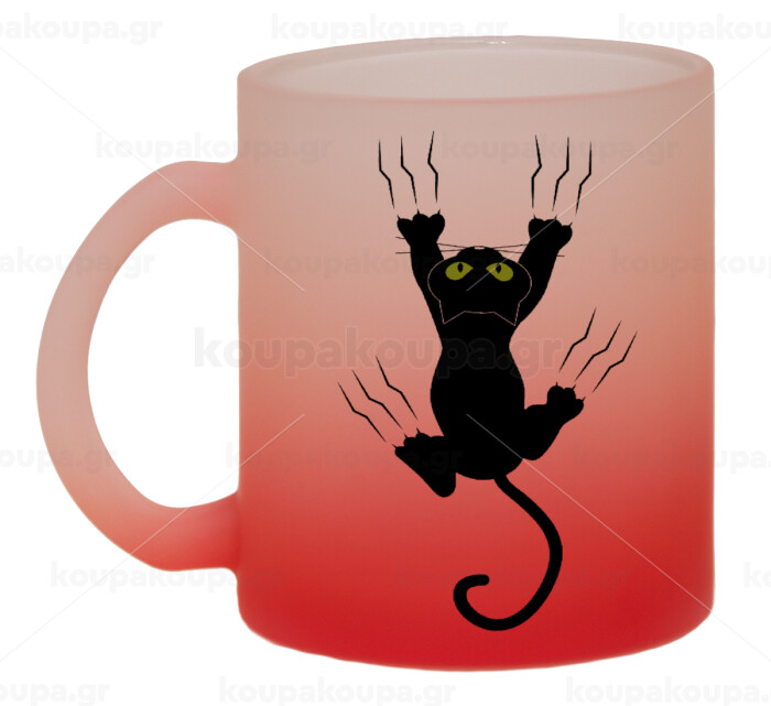 Cat scratching, Κούπα γυάλινη δίχρωμη με βάση το κόκκινο ματ, 330ml