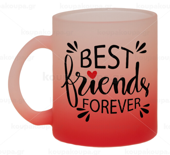 Best Friends forever, Κούπα γυάλινη δίχρωμη με βάση το κόκκινο ματ, 330ml