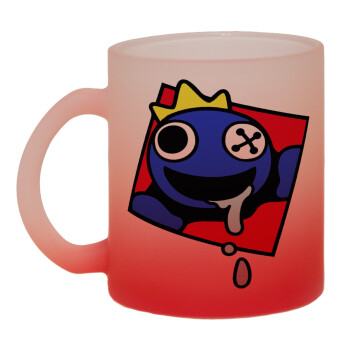 Blue, Rainbow friends, Κούπα γυάλινη δίχρωμη με βάση το κόκκινο ματ, 330ml