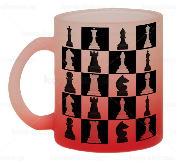 Chess set, Κούπα γυάλινη δίχρωμη με βάση το κόκκινο ματ, 330ml