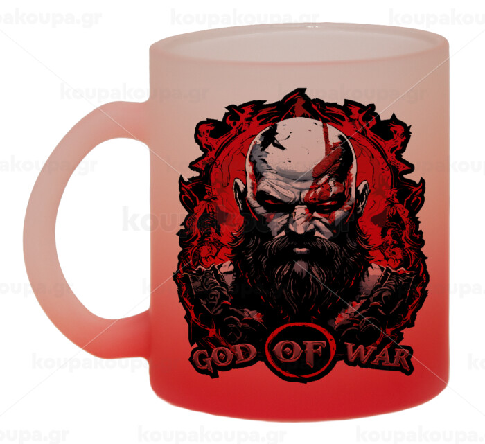 God of war, Κούπα γυάλινη δίχρωμη με βάση το κόκκινο ματ, 330ml