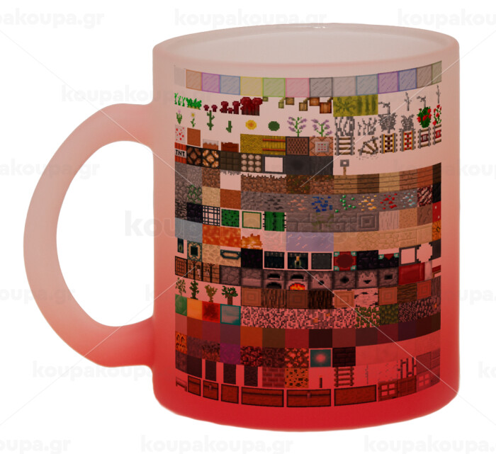 Minecraft blocks, Κούπα γυάλινη δίχρωμη με βάση το κόκκινο ματ, 330ml