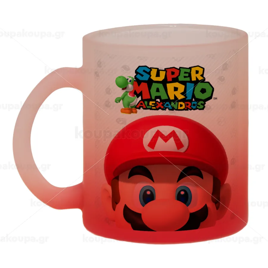 Super mario head, Κούπα γυάλινη δίχρωμη με βάση το κόκκινο ματ, 330ml