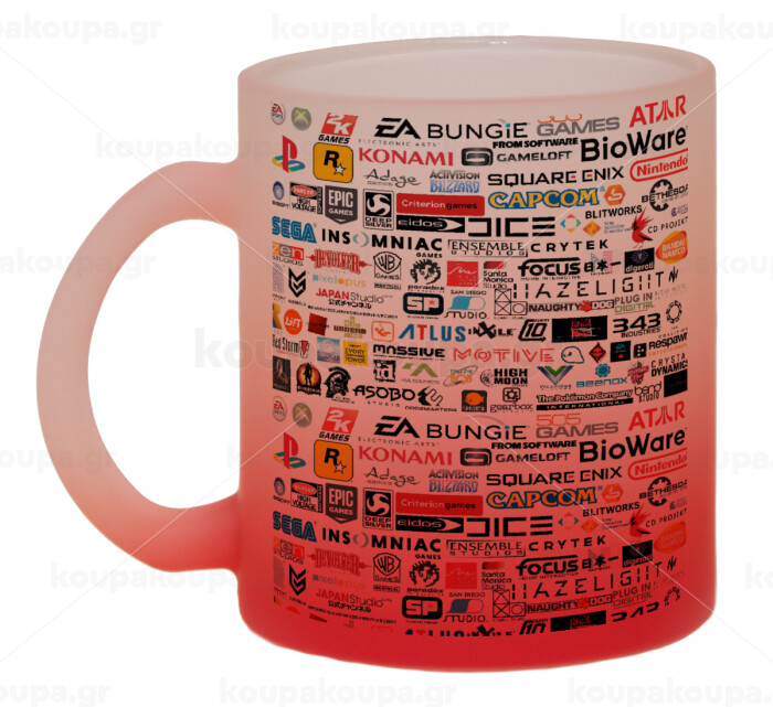 Video Game Studio Logos, Κούπα γυάλινη δίχρωμη με βάση το κόκκινο ματ, 330ml