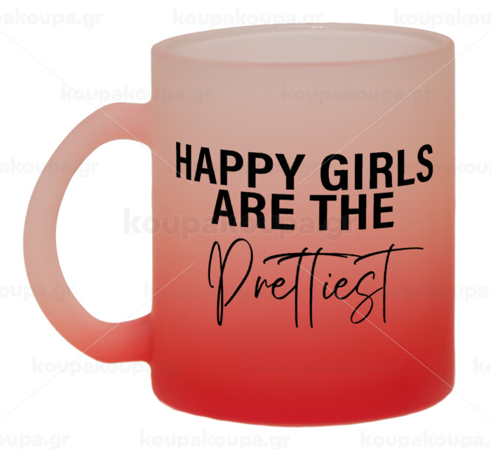 Happy girls are the prettiest, Κούπα γυάλινη δίχρωμη με βάση το κόκκινο ματ, 330ml