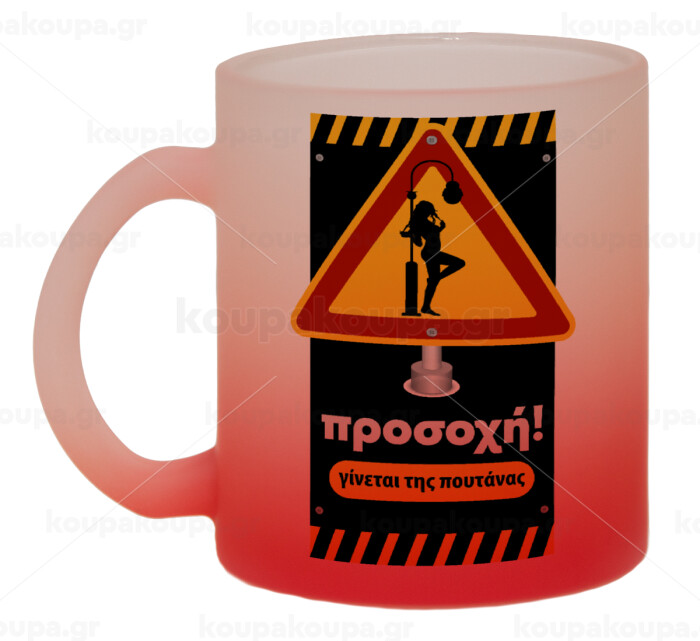 Προσοχή Γίνεται της πουτ.νας, Κούπα γυάλινη δίχρωμη με βάση το κόκκινο ματ, 330ml