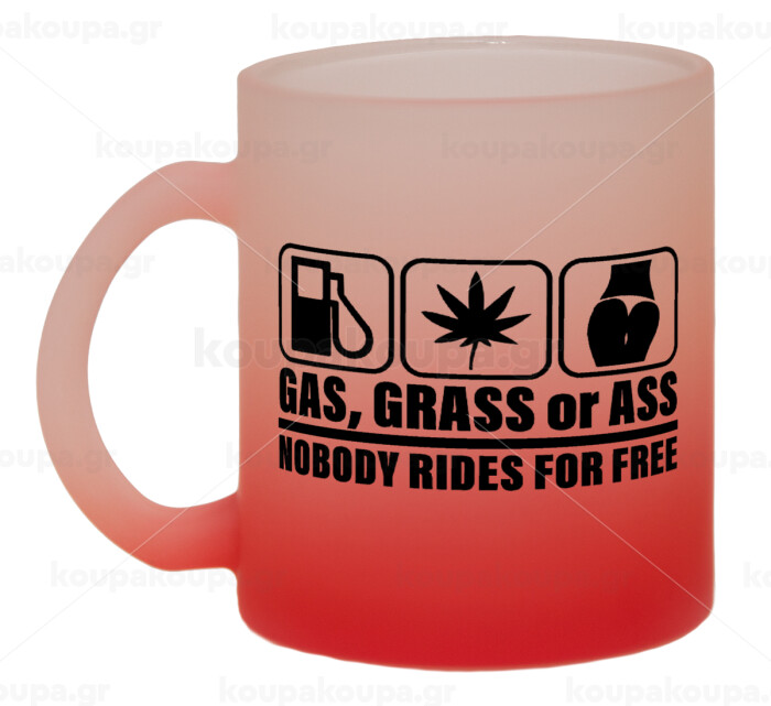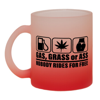 Gas, Grass or Ass, Κούπα γυάλινη δίχρωμη με βάση το κόκκινο ματ, 330ml