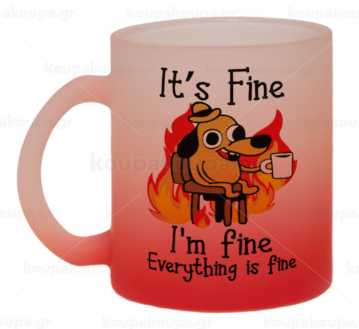 It's Fine I'm Fine Everything Is Fine, Κούπα γυάλινη δίχρωμη με βάση το κόκκινο ματ, 330ml