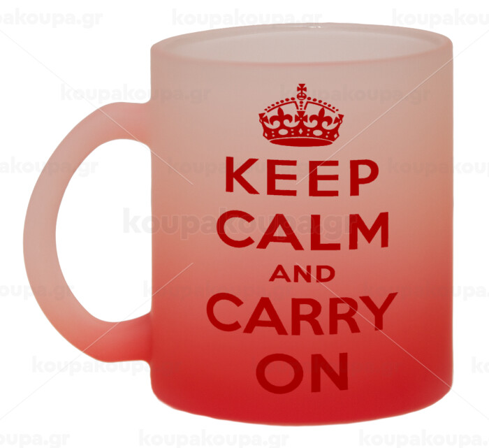 KEEP CALM and carry on, Κούπα γυάλινη δίχρωμη με βάση το κόκκινο ματ, 330ml
