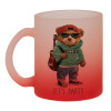 Let's Party Bear, Κούπα γυάλινη δίχρωμη με βάση το κόκκινο ματ, 330ml