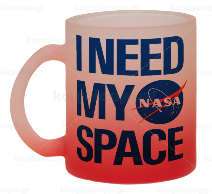 NASA give me some space, Κούπα γυάλινη δίχρωμη με βάση το κόκκινο ματ, 330ml