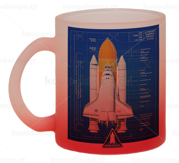 Nasa Space Shuttle, Κούπα γυάλινη δίχρωμη με βάση το κόκκινο ματ, 330ml