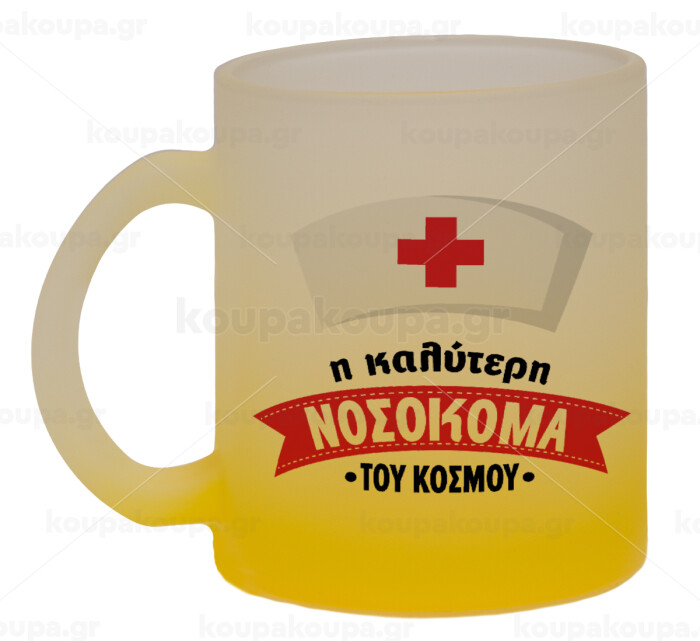 Η καλύτερη νοσοκόμα του κόσμου!!!, Κούπα γυάλινη δίχρωμη με βάση το κίτρινο ματ, 330ml