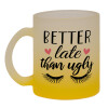 Better late than ugly, Κούπα γυάλινη δίχρωμη με βάση το κίτρινο ματ, 330ml