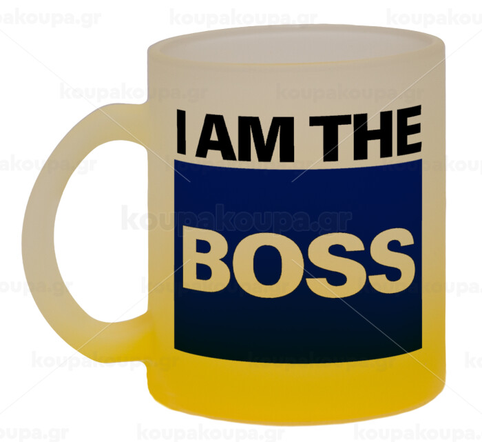 I am the Boss, Κούπα γυάλινη δίχρωμη με βάση το κίτρινο ματ, 330ml