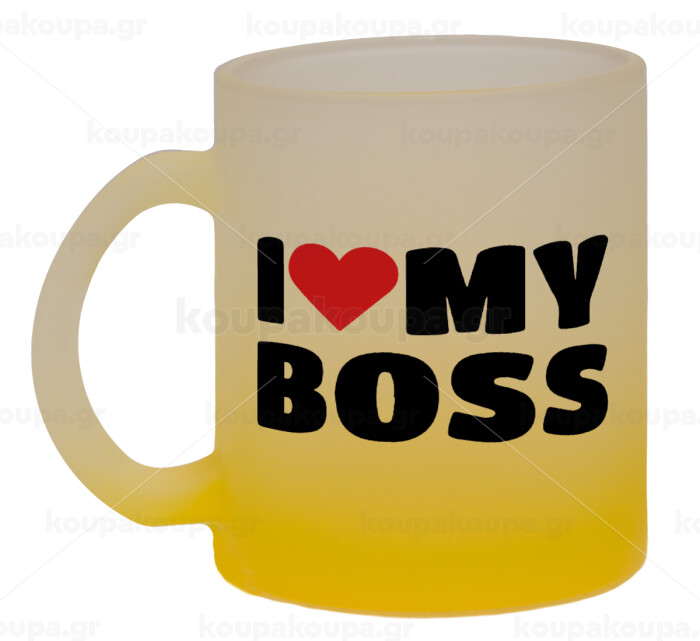 I LOVE MY BOSS, Κούπα γυάλινη δίχρωμη με βάση το κίτρινο ματ, 330ml