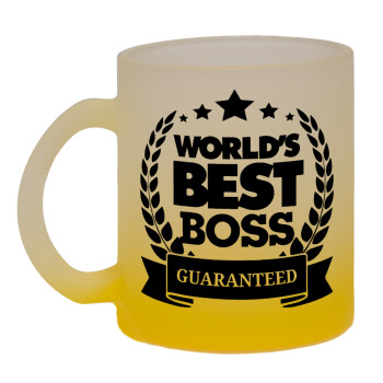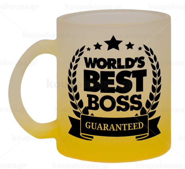 World's best boss stars, Κούπα γυάλινη δίχρωμη με βάση το κίτρινο ματ, 330ml