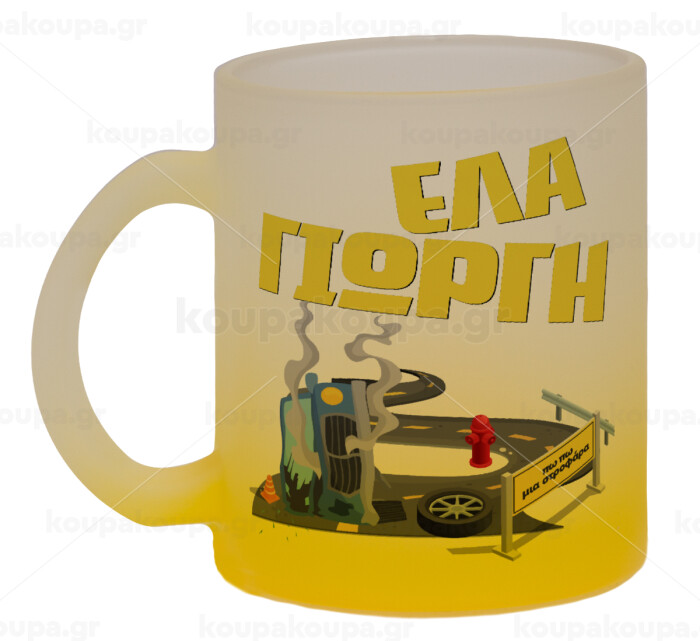 Έλα Γιώργη, πω πω μια στροφάρα, Κούπα γυάλινη δίχρωμη με βάση το κίτρινο ματ, 330ml