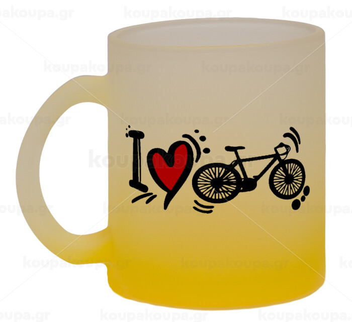 I love my bike, Κούπα γυάλινη δίχρωμη με βάση το κίτρινο ματ, 330ml