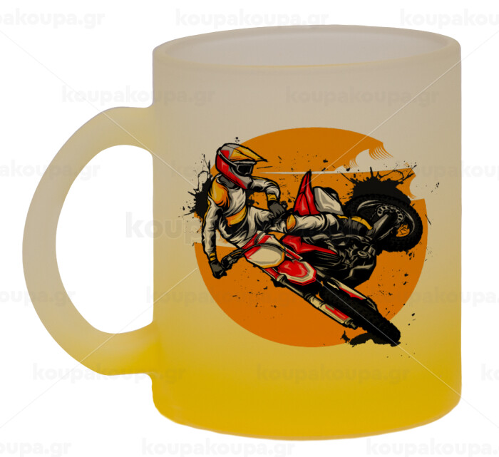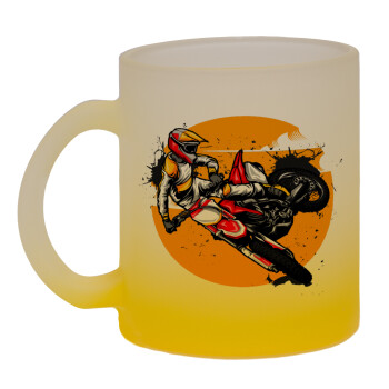 Motocross, Κούπα γυάλινη δίχρωμη με βάση το κίτρινο ματ, 330ml