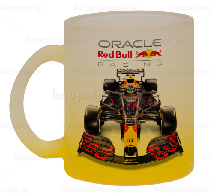 Redbull Racing Team F1, Κούπα γυάλινη δίχρωμη με βάση το κίτρινο ματ, 330ml