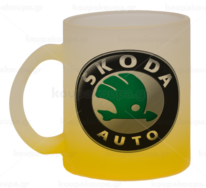 SKODA, Κούπα γυάλινη δίχρωμη με βάση το κίτρινο ματ, 330ml