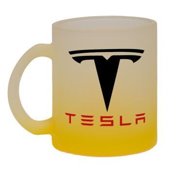Tesla motors, Κούπα γυάλινη δίχρωμη με βάση το κίτρινο ματ, 330ml