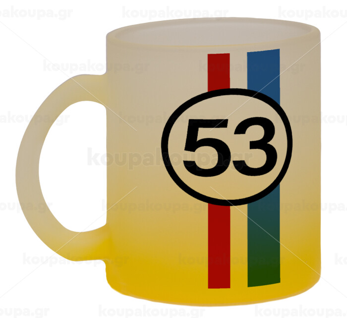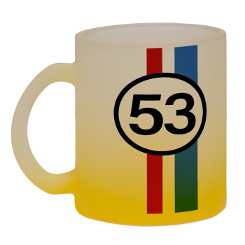 VW Herbie 53, Κούπα γυάλινη δίχρωμη με βάση το κίτρινο ματ, 330ml