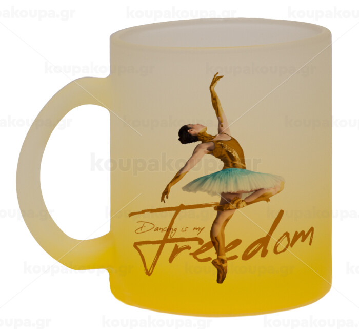 Dancing is my Passion, Κούπα γυάλινη δίχρωμη με βάση το κίτρινο ματ, 330ml
