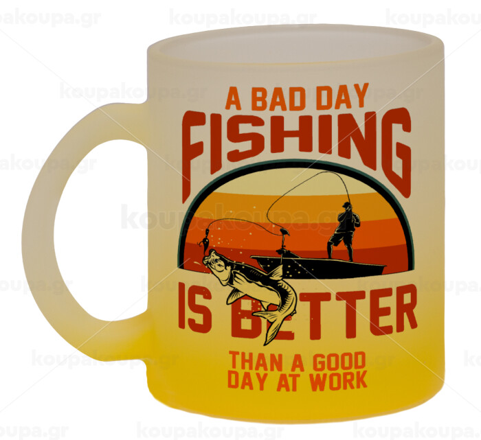 A bad day FISHING is better than a good day at work, Κούπα γυάλινη δίχρωμη με βάση το κίτρινο ματ, 330ml