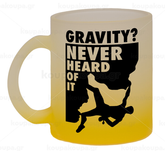 Gravity? Never heard of that!, Κούπα γυάλινη δίχρωμη με βάση το κίτρινο ματ, 330ml