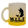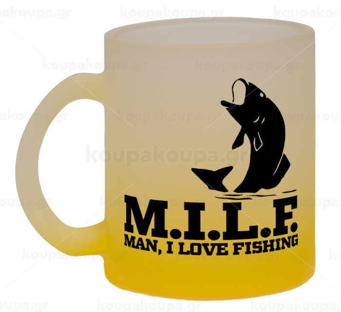 M.I.L.F. Mam i love fishing, Κούπα γυάλινη δίχρωμη με βάση το κίτρινο ματ, 330ml