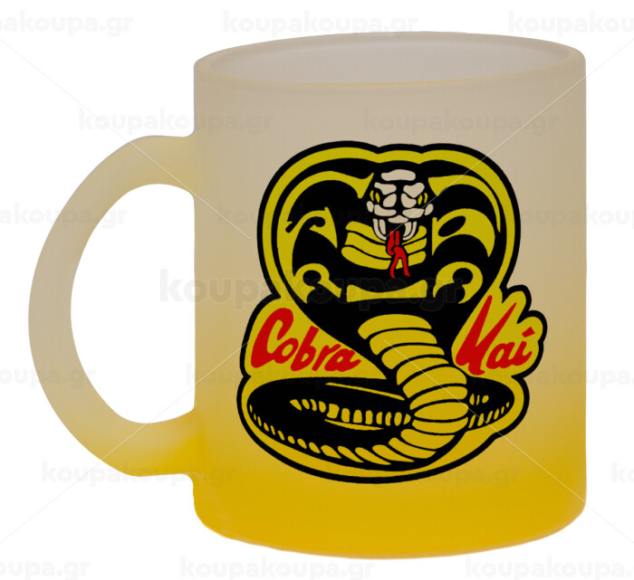 Cobra Kai Yellow, Κούπα γυάλινη δίχρωμη με βάση το κίτρινο ματ, 330ml