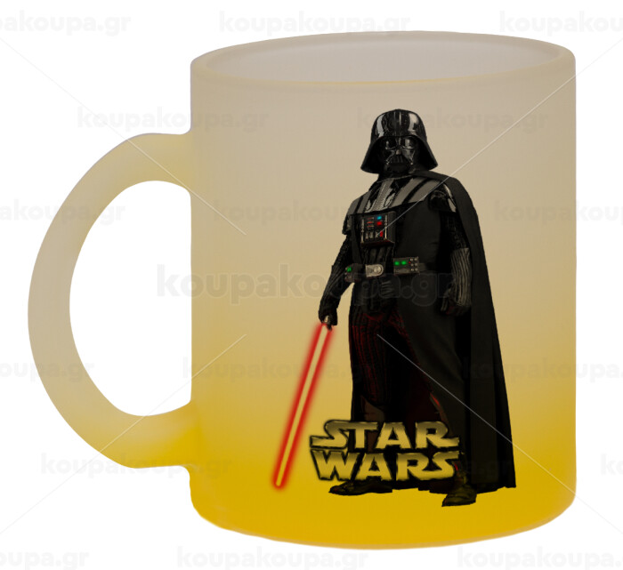 Darth vader, Κούπα γυάλινη δίχρωμη με βάση το κίτρινο ματ, 330ml