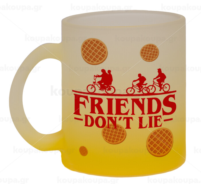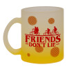 Friends Don't Lie, Stranger Things, Κούπα γυάλινη δίχρωμη με βάση το κίτρινο ματ, 330ml