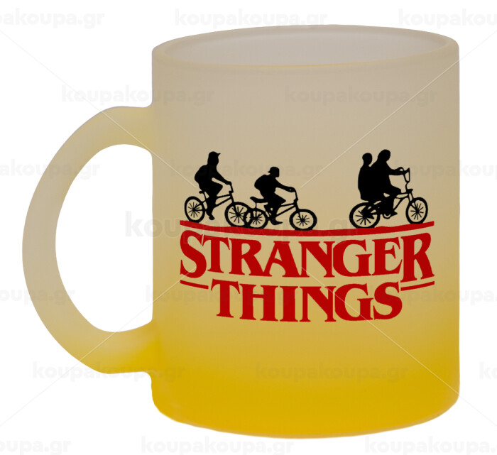 Stranger Things upside down, Κούπα γυάλινη δίχρωμη με βάση το κίτρινο ματ, 330ml