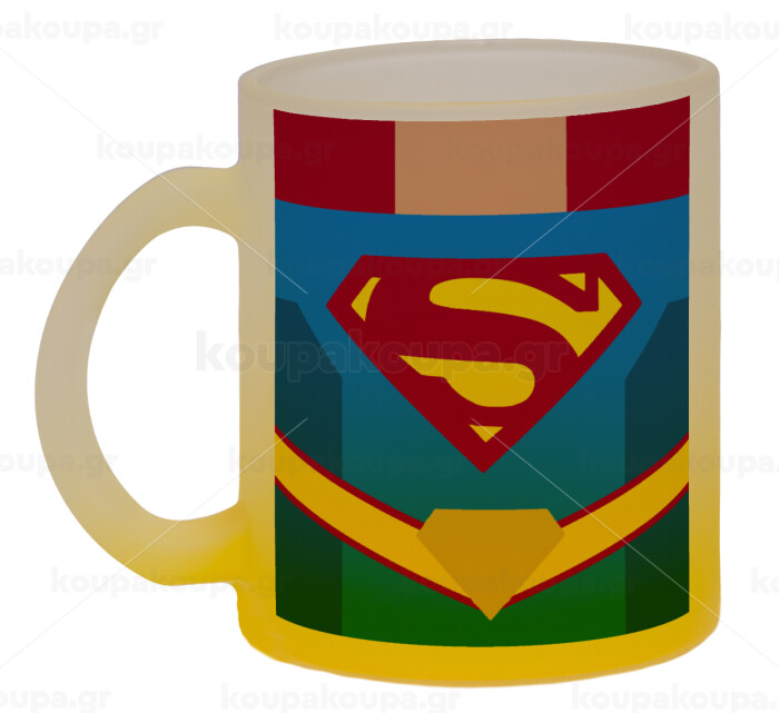 Superman flat, Κούπα γυάλινη δίχρωμη με βάση το κίτρινο ματ, 330ml
