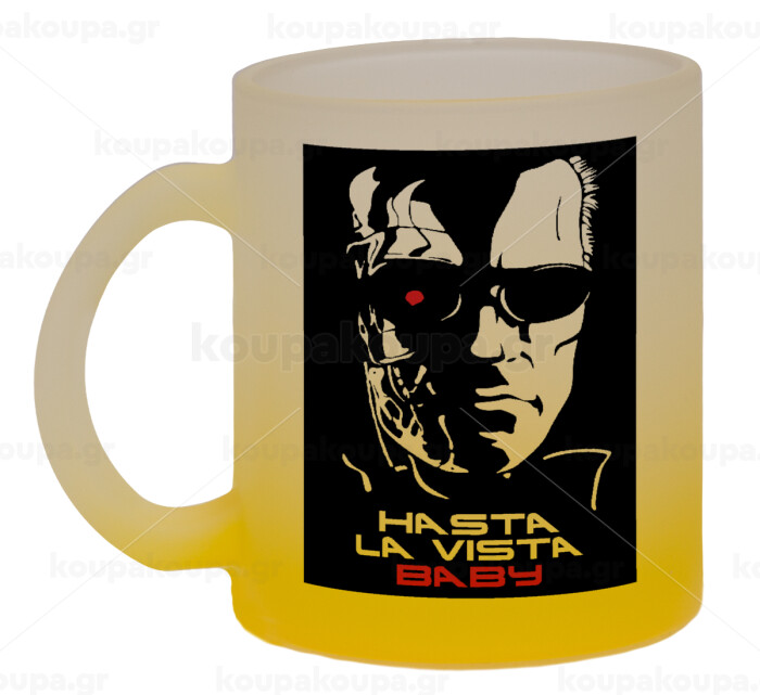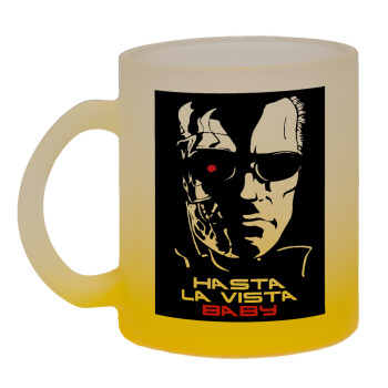 Terminator Hasta La Vista, Κούπα γυάλινη δίχρωμη με βάση το κίτρινο ματ, 330ml
