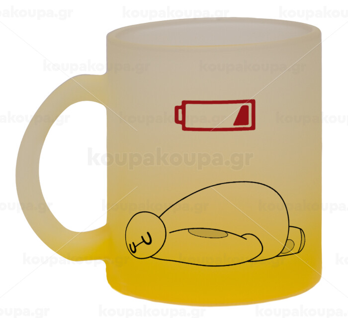 Baymax battery low, Κούπα γυάλινη δίχρωμη με βάση το κίτρινο ματ, 330ml