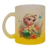 Elsa Princess, Κούπα γυάλινη δίχρωμη με βάση το κίτρινο ματ, 330ml
