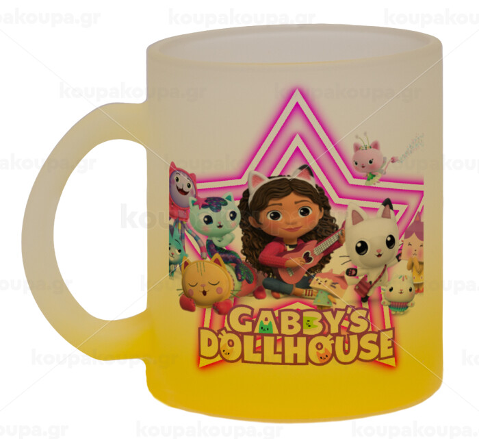Gabby Dollhouse, Κούπα γυάλινη δίχρωμη με βάση το κίτρινο ματ, 330ml