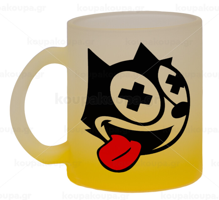 helix the cat, Κούπα γυάλινη δίχρωμη με βάση το κίτρινο ματ, 330ml
